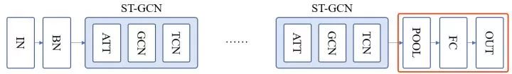 # N*M(256*2)/C(3)/T(150)/V(18)Input:[512, 3, 150, 18]ST-GCN-1:[512, 64, 150, 18]ST-GCN-2:[512, 64, 150, 18]ST-GCN-3:[512, 64, 150, 18]ST-GCN-4:[512, 64, 150, 18]ST-GCN-5:[512, 128, 75, 18]ST-GCN-6:[512, 128, 75, 18]ST-GCN-7:[512, 128, 75, 18]ST-GCN-8:[512, 256, 38, 18]ST-GCN-9:[512, 256, 38, 18]