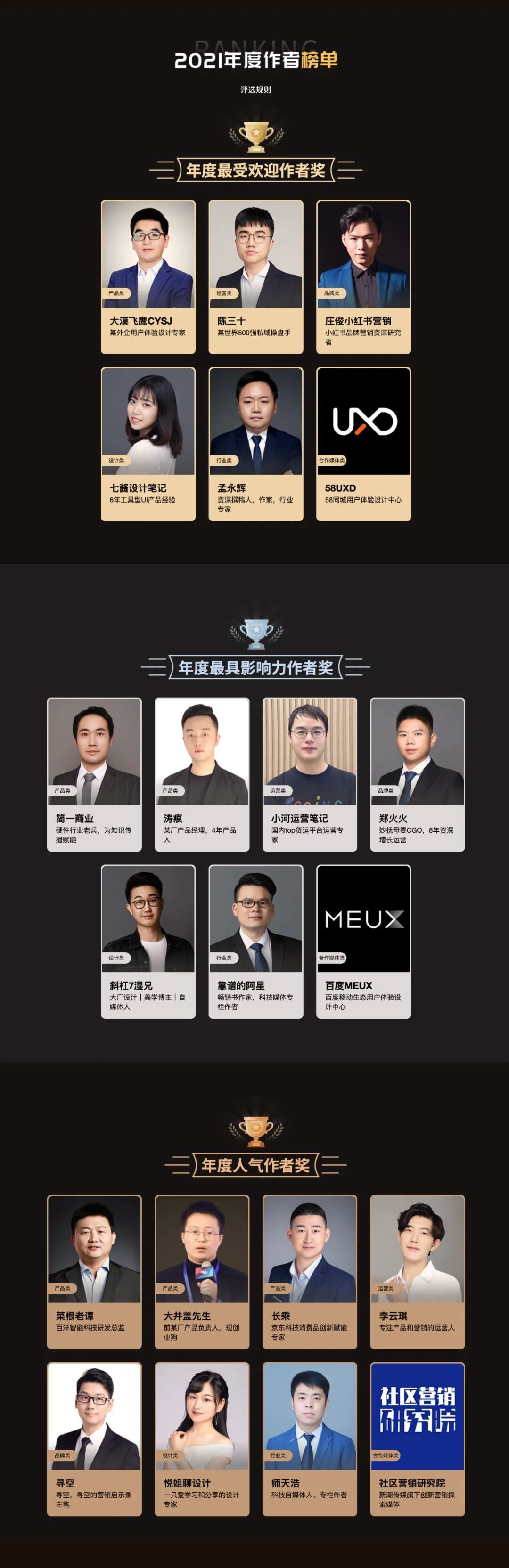 为了感谢每一位内容创作者的辛苦付出,人人都是产品经理举办了2021年度作者评选,向这些优秀的引路人致敬!