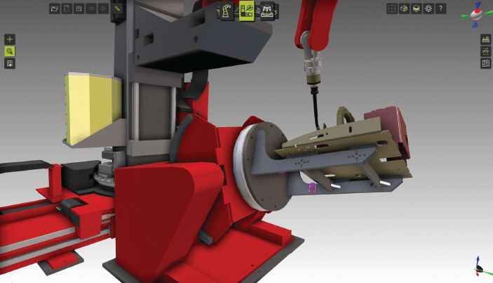 图1 :离线编程软件利用机器人运动学、外轴和工件定位器的校准数据来精确仿真机器人焊接过程。图片来源:Cenit 公司