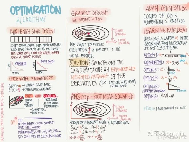 下面就是具体的最优化算法了,包括最基本的小批量随机梯度下降、带动量的随机梯度下降和 RMSProp 等适应性学习率算法。
