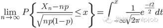 使用上式的结果,并在二项概率累加求和的过程中近似的使用定积分代替求和,很容易就能得到