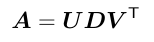 若A为m*n矩阵,则存在m*m的正交矩阵U、n*n的正交矩阵V和m*n的对角矩阵D满足: