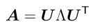 特别的若A为对称矩阵,则A的特征值均为实数,特征向量可化为正交特征向量,即X为正交矩阵,用U表示,则矩阵A可表示为: