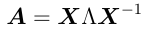 令矩阵 A 的第 i 个特征值为 λi, 对应的特征向量为 xi, 所有特征向量构成的矩阵为 X ,若X可逆,则A可对角化表示为: