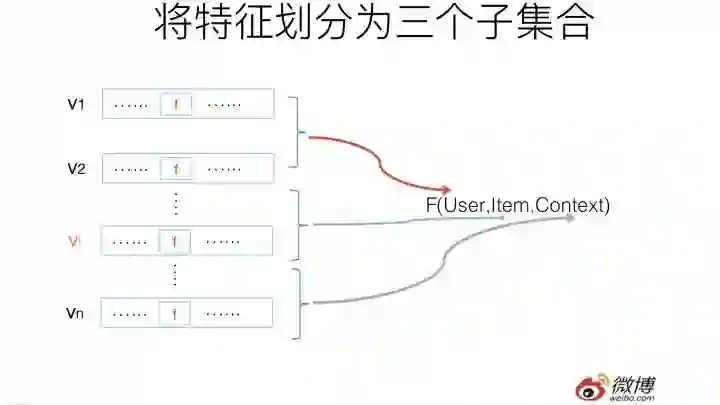 对于比如兴趣分类,兴趣标签,热门,地域等召回策略,要把这些召回渠道统一到FM模型相对直观,只需要在训练FM模型的时候,针对每一路的特性,在用户特征端和物品特征端新增对应特征即可。比如对于地域策略,我们可以把物品所属地域(比如微博所提到的地域)和用户的感兴趣地域都作为特征加入FM模型即可。兴趣标签,Topic,兴趣实体等都是类似的。所以大多数情况下,在多路召回模式下你加入新的一路召回,在FM统一召回策略下,对应地转化成了新增特征的方式。
