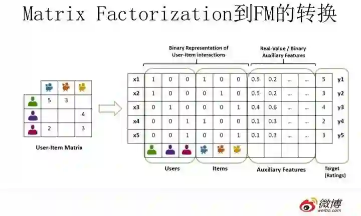 其一:在你有使用MF做协同过滤的想法的时候,暂时压抑一下这种冲动,可以优先考虑引入FM来做的,而非传统的MF,因为可以在实现等价功能的基础上,很方便地融入其它任意你想加入的特征,把手头的事情做得更丰富多彩。