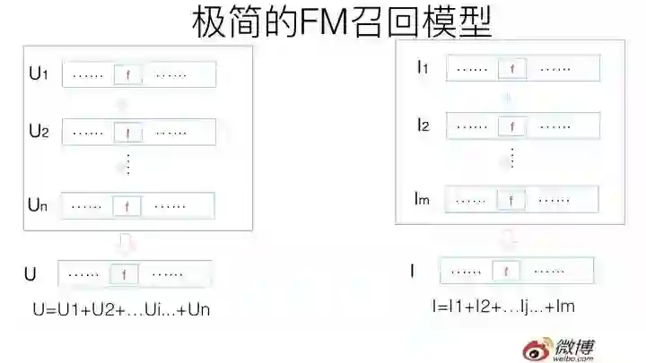 对于极简版FM召回模型来说,用户兴趣向量U可以离线算好,然后更新线上的对应内容;物品兴趣向量I可以类似离线计算或者近在线计算,问题都不大。