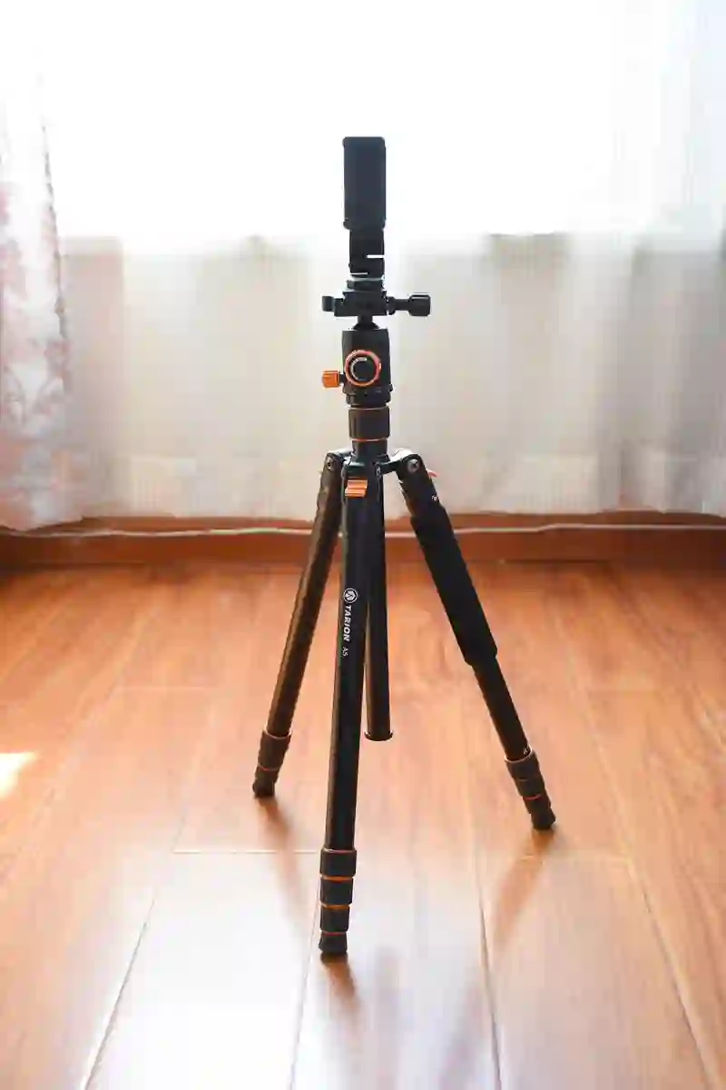 后来在学校摄影协会的推荐下买了 TARION A5,大概不到 400 块的样子,质量没的说,铝合金很厚实,还带有云台和手机支架,撑手机和相机都很方便。