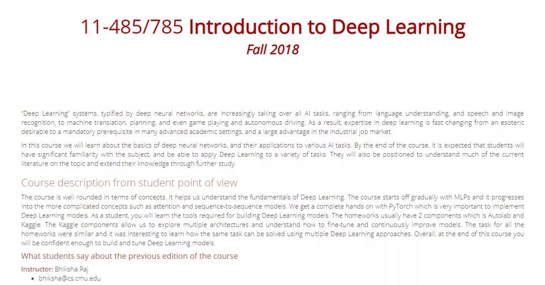 课程官方链接:http://deeplearning.cs.cmu.edu/
