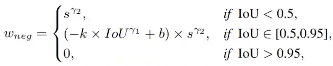 它与IoU呈负相关,但与s呈正相关。可以看出,对于2个pos权重相同的Anchor,IoU较小的Anchor的neg权重较大。 的定义与推理过程很好地兼容,它可以进一步区分具有几乎相同pos权重的模糊Anchor。