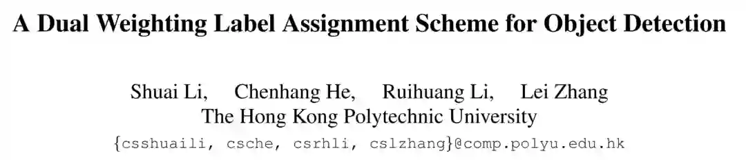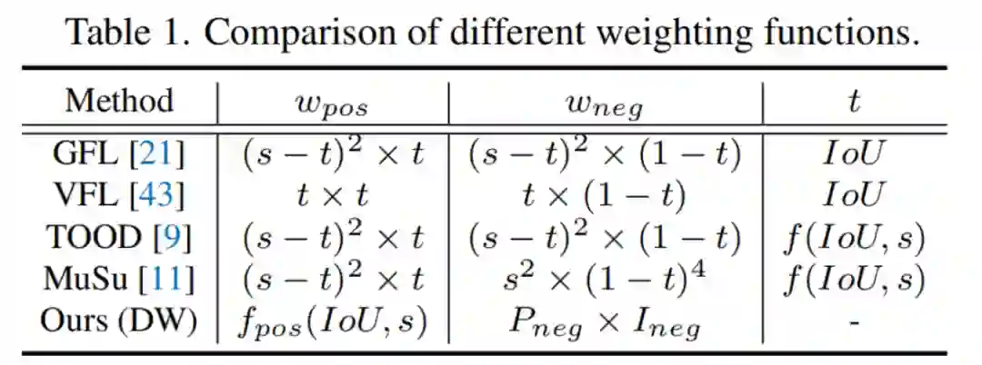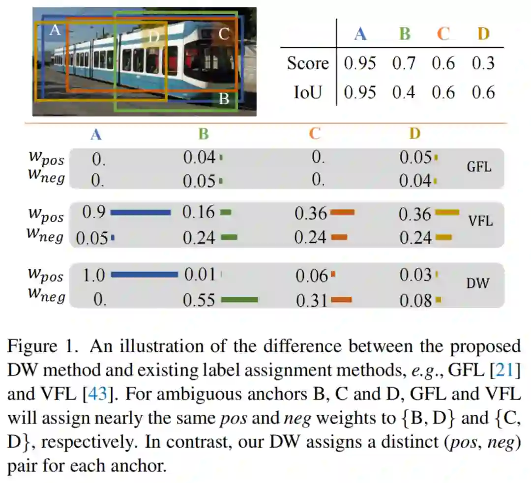 为了给检测器提供更多的具有判别性的监督信号,作者提出了一种新的Label Assignment方案,称为双加权(DW),从不同的角度指定正负样本的权重,并使它们相互互补。