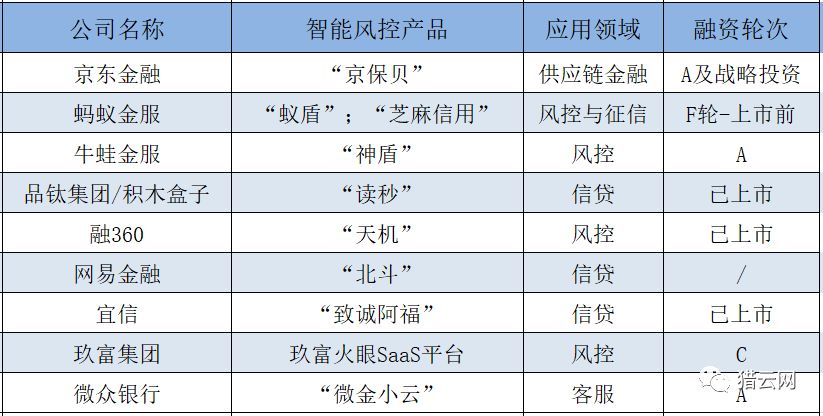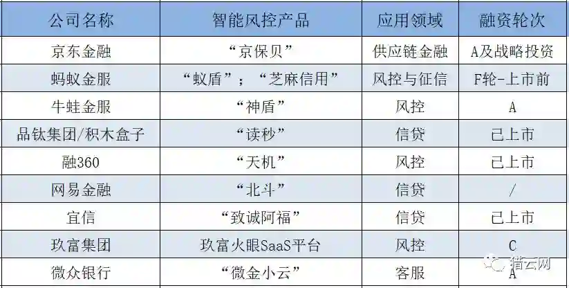 根据网络公开信息,盘点了一些公司规模较大、有智能风控产品的互联网金融公司(不包含研发自用型)。