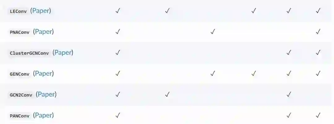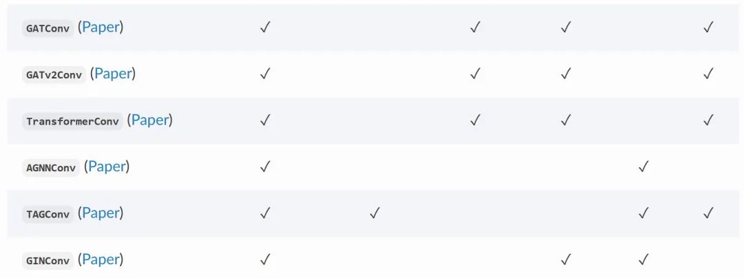 PyG包含图神经网络训练中的数据集处理、多GPU训练、多个经典的图神经网络模型、多个常用的图神经网络训练数据集而且支持自建数据集,主要包含以下几个模块: