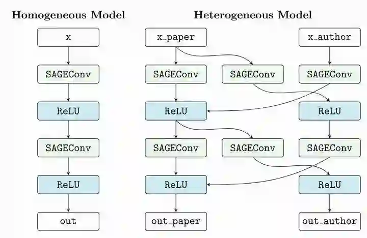 PyG可以通过torch_geometric.nn.to_hetero(),或者torch_geometric.nn.to_hetero_with_bases()将一个简单图神经网络转换成异质图的形式。