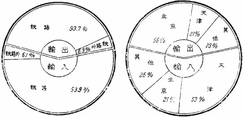 ▲ 经铁路和其他渠道实现的贸易额所占比重与各地贸易情况图