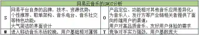 下面以QQ音乐为竞品,对网易云音乐做一个SWOT分析。