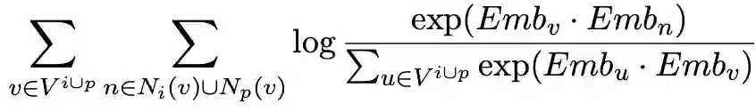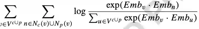 最后,对于合作视图,我们同样采用基于元路径随机游走的网络嵌入方法学习节点表示,类似地,其目标函数为: