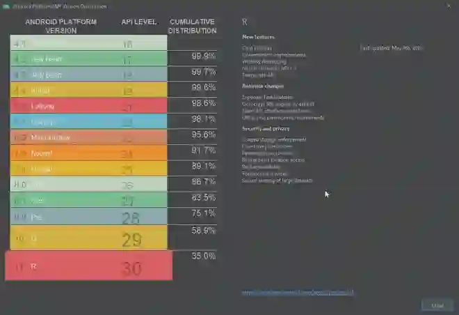 外媒认为,这个图表缺乏 Android 12 数据可能与它对 Android 开发者的预期目的有关。据介绍,Android Studio 图表不是作为你的应用程序应该针对哪些 Android API 的指南(Play Store 通过其最低 API 要求来处理这个问题),而是帮助开发者决定到底应该支持哪些版本的 Android。通过这个图表,开发者可以进一步了解不支持旧版本 Android 可能会失去的潜在客户的占比。
