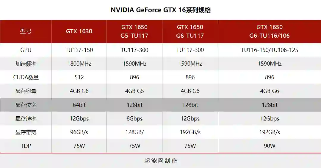 据 VideoCardz 报道,相比于目前的 GeForce GTX 1650 系列,英伟达在配置上会做进一步的缩减,采用的 TU117-150 GPU 仅配备 512 个 CUDA 核心,同时显存位宽也缩水了,仅为 64 位,只有 TU117-300 的一半。不过其加速频率据称达到了 1800MHz,比 GeForce GTX 1650 系列的 1590MHz 更高一些,这也是为什么规格降低了但 TDP 保持在 75W 的原因。