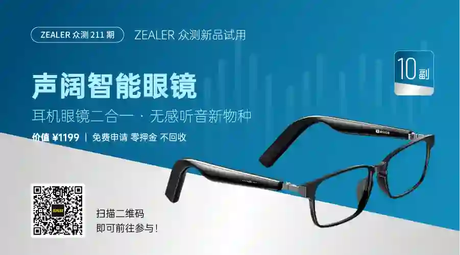 戴上眼镜就能听音乐?这是什么神奇体验!本期 ZEALER 众测上新——声阔智能眼镜。耳机+眼镜 2 合 1,不入耳亦可随时随地听音乐、打电话;拥有开放式环绕音系统,感受 360° 沉浸式听音体验;符合人体工学设计,佩戴舒适不累耳…扫上方二维码或戳左下角「阅读原文」即可申请免费试用。