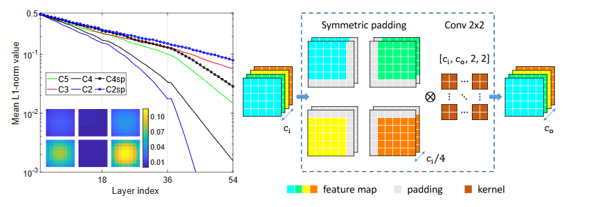 这篇论文探索了偶数大小卷积核的(2×2、4×4)的泛化能力,并通过信息腐蚀假设量化了特征漂移问题。然后,论文引入了对称填充以在单个卷积层内优雅的实现对称性。