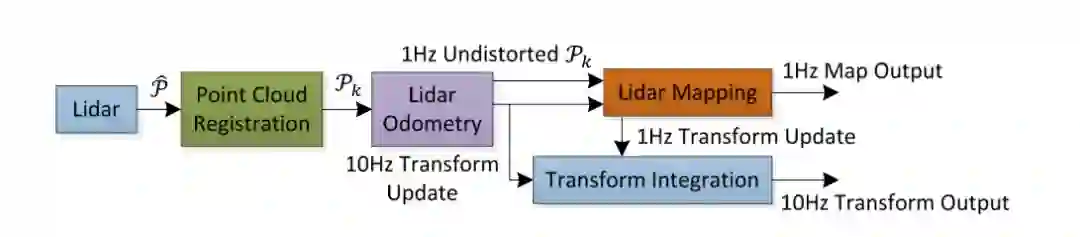 完成一次扫描(sweep)后,然后进入建图过程。 使用已有地图去匹配和配准没有畸变的点云数据,以1Hz的频率输出。建图过程如下: