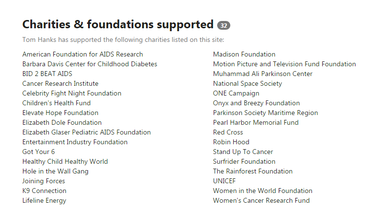 就像古天乐一样,他资助了多个慈善组织。包括癌症防治、艾滋病研究、女性权利、贫困儿童救助等。