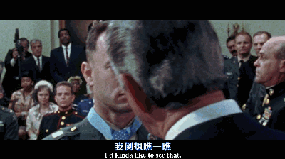 而在总统接见阿甘的那场戏中,总统询问他伤口在哪,他回答说在屁股上。结果总统打趣道:“那一定是个奇观,我倒想瞧一瞧。”