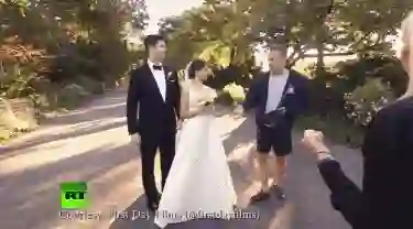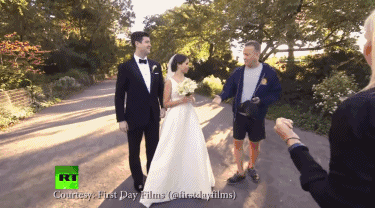 2016年,一对新婚夫妻在中央公园举行婚礼,一个陌生人走过来和他们道喜。
