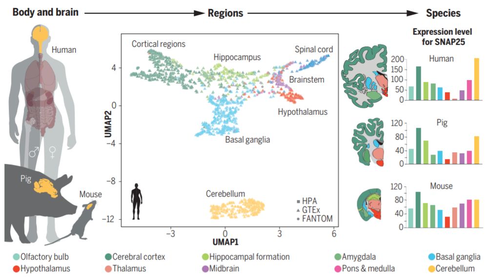 哺乳动物大脑解剖区域的全基因组转录组分析(来源:Science)