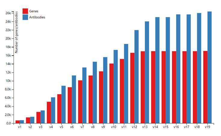 第 19 版,提供了约 17085 组基因和 26371 组抗体