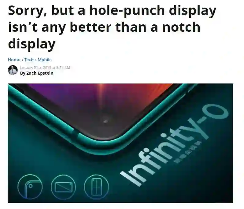 这些问题显示出,挖孔屏技术在当时还并不是很成熟。小米王腾、卢伟冰还为此轮番上阵,在微博上进行了多轮挖孔屏的“科普”。对于普罗大众来说,新鲜登场的挖孔屏似乎没有掀起太多的波澜。外媒 BGR 在 2019 年 1 月发文称,挖孔屏肯定会风靡一时,不过一旦新鲜感消失,人们就会发现它确实没有比刘海设计更好。