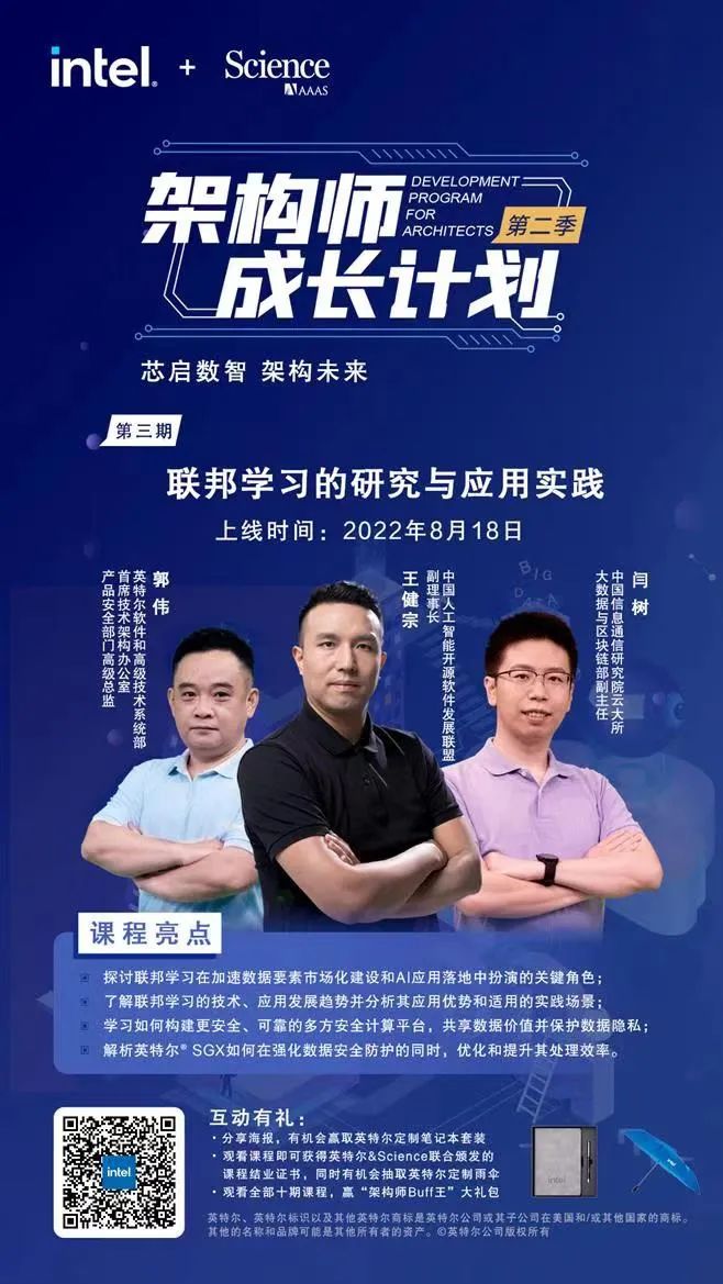 英特尔®SGX技术实际作用示意图 在工作时,SGX 技术会给相关数据分配一块隔离区域,也叫「飞地(Enclave)」。我们可以把它理解成一个隔离医院,但能入驻这个医院的并不是已经被感染的患者,而是那些健康群体,即需要受到严密保护的应用代码或关键数据。SGX 技术能在 CPU 的支持下,在内存等特定硬件环境中构建出这样一个飞地,让各医疗科研机构的数据分析、模型训练及推理所涉及的数据都运行在各自的飞地中,并通过访问控制为这些应用代码和数据提供更可信赖的安全保障。 这种飞地独立于操作系统、虚拟机以及 BIOS 系统之外,也就是说,即便一些比你的应用程序更底层的基础软件或系统在恶意攻击中沦陷,飞地也可以通过基于硬件的、增强型的安全防护更有效地阻断这些攻击,尽力避免其中的数据或代码被窃取或篡改。 那么,这个「飞地」有多大呢?这和你要使用的英特尔处理器的种类及型号有关。医渡云解决方案使用的是英特尔去年发布的面向单路和双路服务器的第三代至强® 可扩展处理器,它已经全面内置 SGX 技术,可在双路服务器上实现最大容量为 1TB 的保留加密内存区域(Enclave Page Cache,EPC,单颗处理器最高支持 512GB),这对于医疗科研机构进一步扩展 AI 模型训练与推理的数据规模至关重要。 不过,如果你以为医渡云的方案仅仅是要借 SGX 技术来实现更大、更强的安全「飞地」的话,那就是小看了全新至强® 可扩展处理器在 AI 实践中的价值了——它除内置有 SGX 技术外,还有来自英特尔® 高级矢量扩展 512(英特尔® AVX-512)技术和英特尔® 深度学习加速(英特尔® DL Boost)技术的加成,也可在兼顾更优安全能力的同时,为医渡云方案涉及的复杂计算需求提供有力支撑。 因此这款处理器在医渡云的多方安全计算解决方案中同时发挥着加固安全与提升性能的双重价值。正是得益于它带来的综合优势,医渡云已经开始支持多家医院和医疗科研机构开发一系列基于该方案的联合研究项目,同时也通过了中国信息通信研究院在隐私保护计算技术上的两项认证——《基于多方安全计算的数据流通产品技术要求与测试方法》及《基于联邦学习的数据流通产品技术要求与测试方法》。 基于 TEE 的多源金融大数据隐私计算技术验证 另一个非常青睐 TEE 解决方案的是金融行业。与其他技术方案相比,以硬件为载体来为数据和代码提供安全可信环境的 TEE,在金融行业最关注的数据安全、性能以及可用性三个维度上,能取得接近「帕累托最优」的效果,因此受到较多企业的青睐。