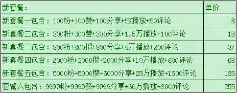 从以上价目表可以看出,点赞、评论、粉丝各类套餐琳琅满目,价格从几元到上百元不等。