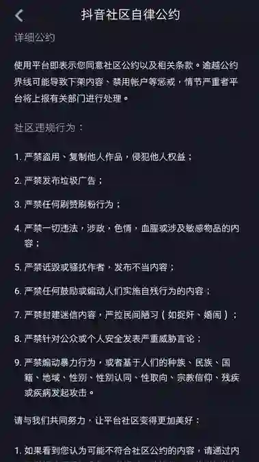 抖音社区的自律公约第三条为:严禁任何刷赞刷粉行为。
