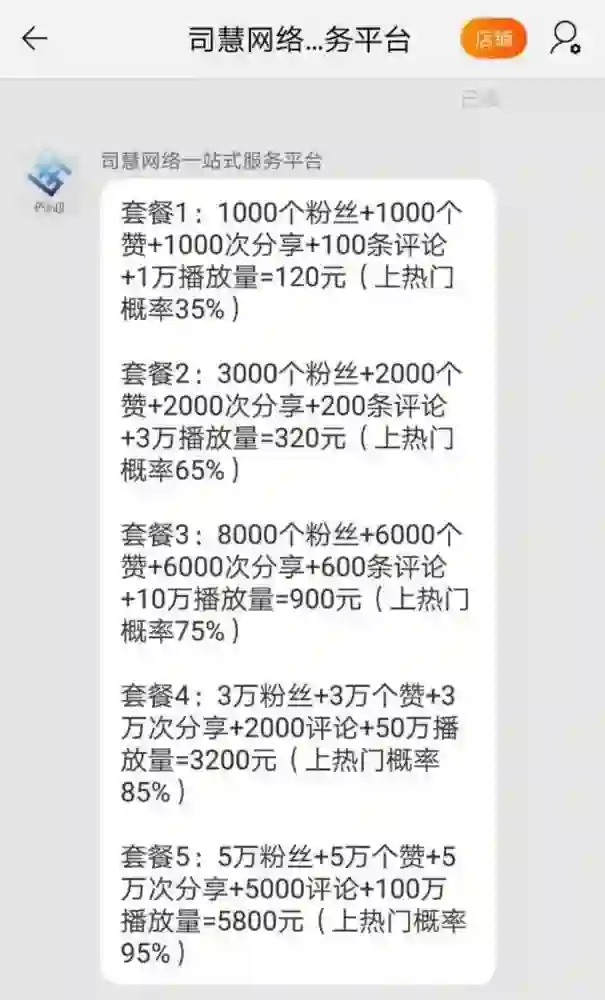 司慧网络在网店宣传中表示,目前在做抖音类的平台大概有几十家,而这几十家平台里边大多数是属于“代理倒卖”,而自身平台是专业的刷粉平台,能保障账号安全。其除了能为抖音号刷粉以外,还能为微博、淘宝直播刷粉。