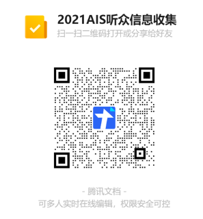 本届会议将于5月29日至30日在北京锡华商务酒店举行。会议开放线下听众报名通道,提供听众午餐,交通及住宿需自理。请有意向参加线下会议者扫描“2021AIS听众信息收集”二维码填写相关信息。由于场地限制,参会者人数限制为300人,名额先到先得。