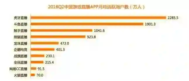 数据来自《比达咨询:2018年第2季度中国游戏直播市场研究报告》