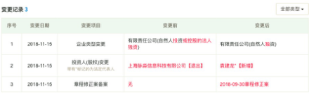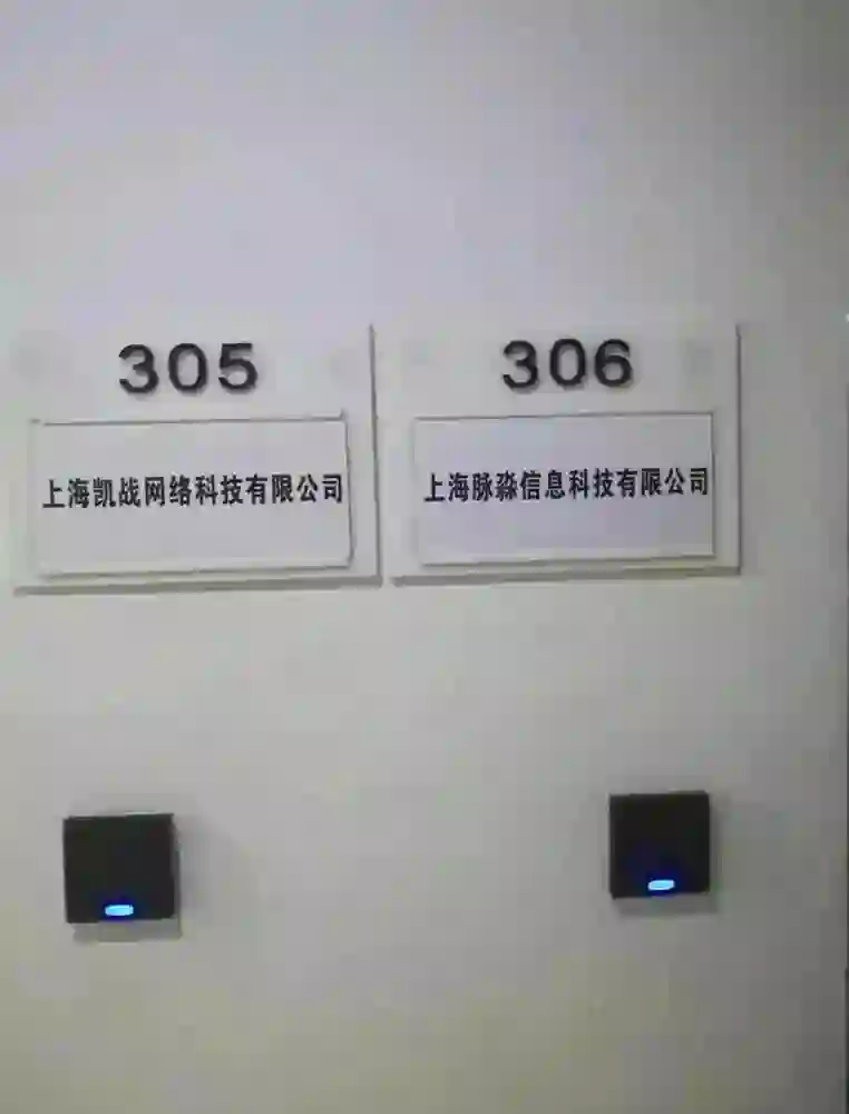据了解,全民TV所属公司上海脉淼新地址旁边是一家名为上海凯战网络科技有限公司,一个是305,一个306。记者在天眼查查询到,上海凯战网络科技有限公司注册时间时间2018年5月31日,法人是袁建龙,其股东原来是上海脉淼,后变更为袁建龙。