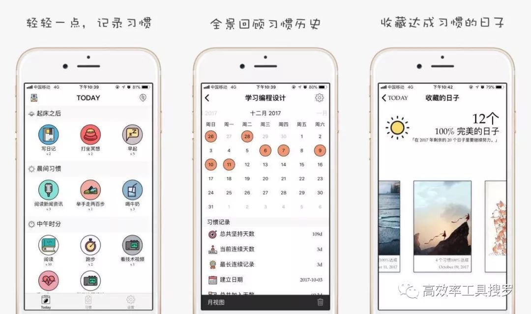 完成的习惯只需轻轻点击就表示完成,清脆的闹钟声会响起。