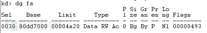 为了得到WinDBG中的fs寄存器地址,可以使用下面的命令: