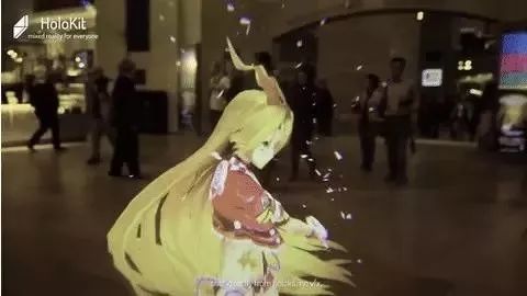HoloKit的特点是具备76度的视场角,实现了6Dof的inside-out追踪。雷锋网在现场体验HoloKit时发现这个眼镜盒子很轻便,佩戴较为舒适。3D模型能固定在地面上,能围绕其一圈从不同角度观看。76度的视场角能让3D的初音未来看起来和人差不多的大小,沉浸感远大于手机AR。但是,这样的手机盒子方案有一个缺陷,3D的内容不能很好融入环境,效果比手机ARKit差一些。