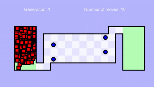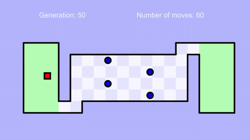 和自然选择理论一致,适合度最高的 AI 可以繁殖,做不到的 AI 就只能去死了。小哥规定,AI 要在有限的步数之内完成特定的指令。完成的指令越多,就可以获得更多的步数。