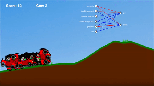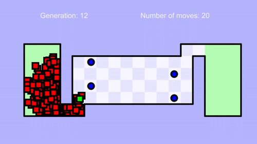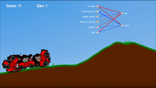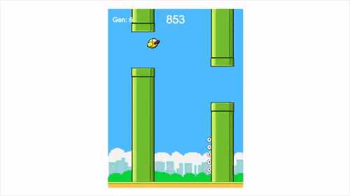 在每一代的 AI 里,玩得最好的可以进行繁殖,并把自己的优秀基因遗传给下一代。当然了,下一代也不会照单全收,还是会有小小的突变。