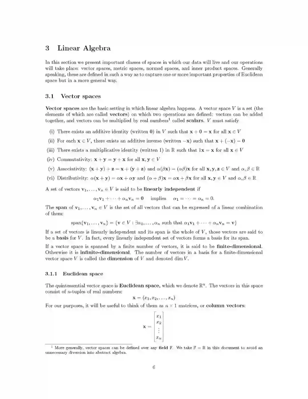 机器学习使用各种数学领域的工具。本文试图对机器学习入门课程所需的数学背景进行总结,这门课在加州大学伯克利分校被称为CS 189/289A。我们假设读者已经熟悉多变量微积分和线性代数的基本概念(UCB数学53/54的水平)。这里介绍的大多数主题都很少涉及; 我们打算给出一个概述,并向感兴趣的读者指出更全面的处理以获得进一步的细节。请注意,本文关注的是机器学习的数学背景,而不是机器学习本身。我们将不讨论具体的机器学习模型或算法,除非可能通过强调数学概念的相关性。该文件的早期版本不包括校样。我们已开始在有助于理解的相当短的证明里加上证明。这些证明不是cs189的必要背景,但可以用来加深读者的理解。