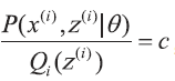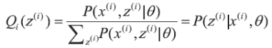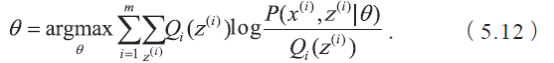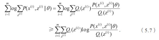 由于z(i) 是未知的, 无法直接通过最大似然估计求解参数, 这时就需要利用EM 算法来求解。假设z(i) 对应的分布为,并满足。利用Jensen 不等式,可以得到: