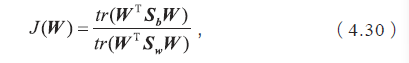 其中W是需要求解的投影超平面,WTW=I,根据问题2 和问题3 中的部分结论,我们可以推导出最大化J(W) 对应了以下广义特征值求解的问题