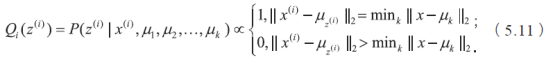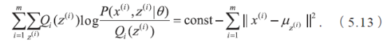 剩下的事情就是说明K 均值算法与EM 算法的关系了。K 均值算法等价于用EM 算法求解以下含隐变量的最大似然问题: