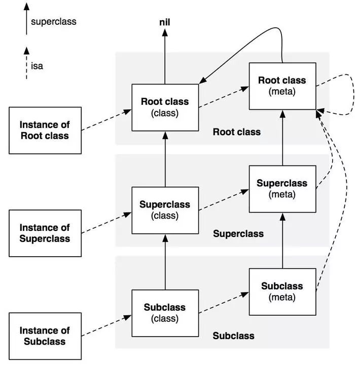 NSObject能匹配成功,是因为这个类比较特殊,在第二次获取superclass的时候,NSObject元类的superclass就是NSObject的类对象,所以会匹配成功。而其他三种匹配,则都会失败,各位同学可以去自己分析一下剩下三种。